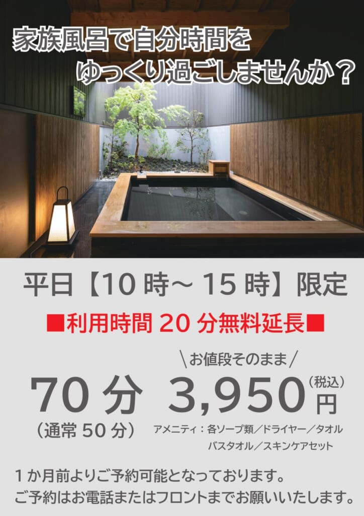 3月2日(月)より平日【10時~15時限定】で家族風呂ご利用のお客様に