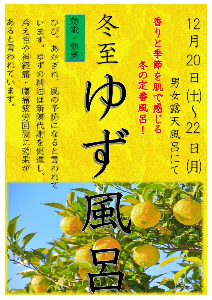 【冬至】ゆず風呂実施日のお知らせ