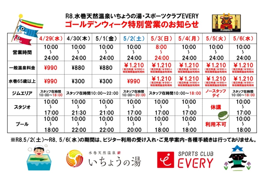 ゴールデンウイーク特別営業のお知らせ