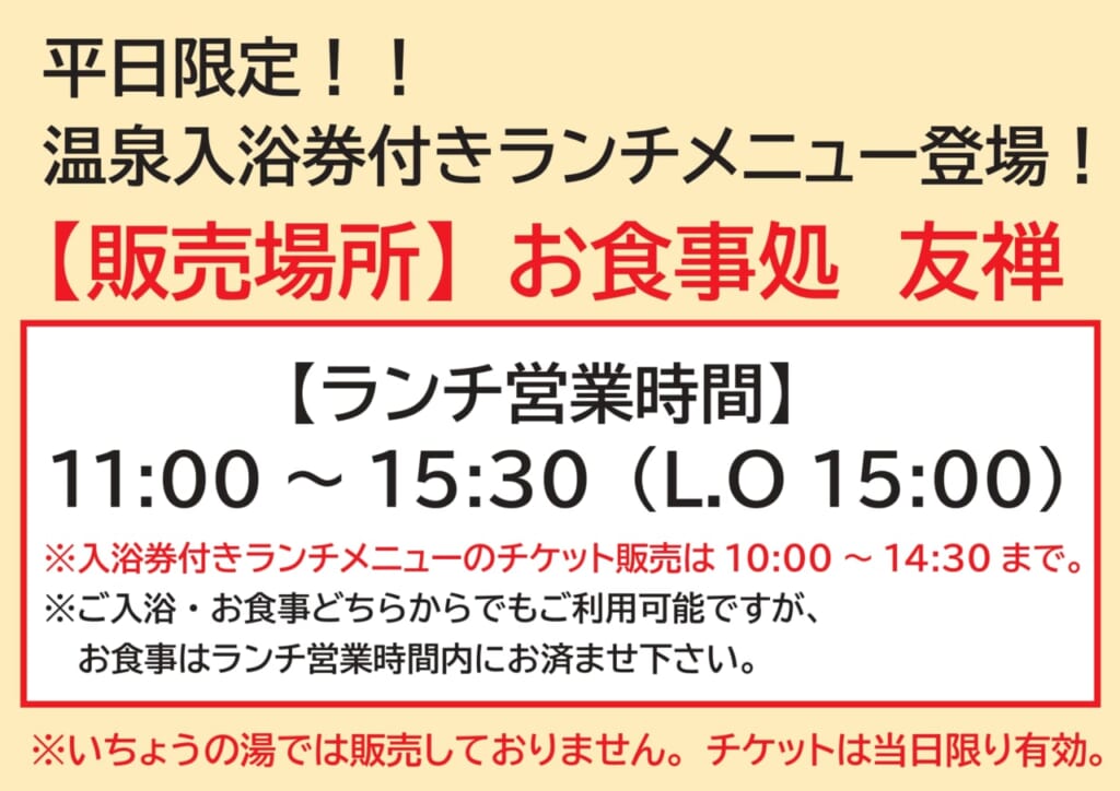 - 平日限定!!温泉入浴券付きランチメニュー登場!
